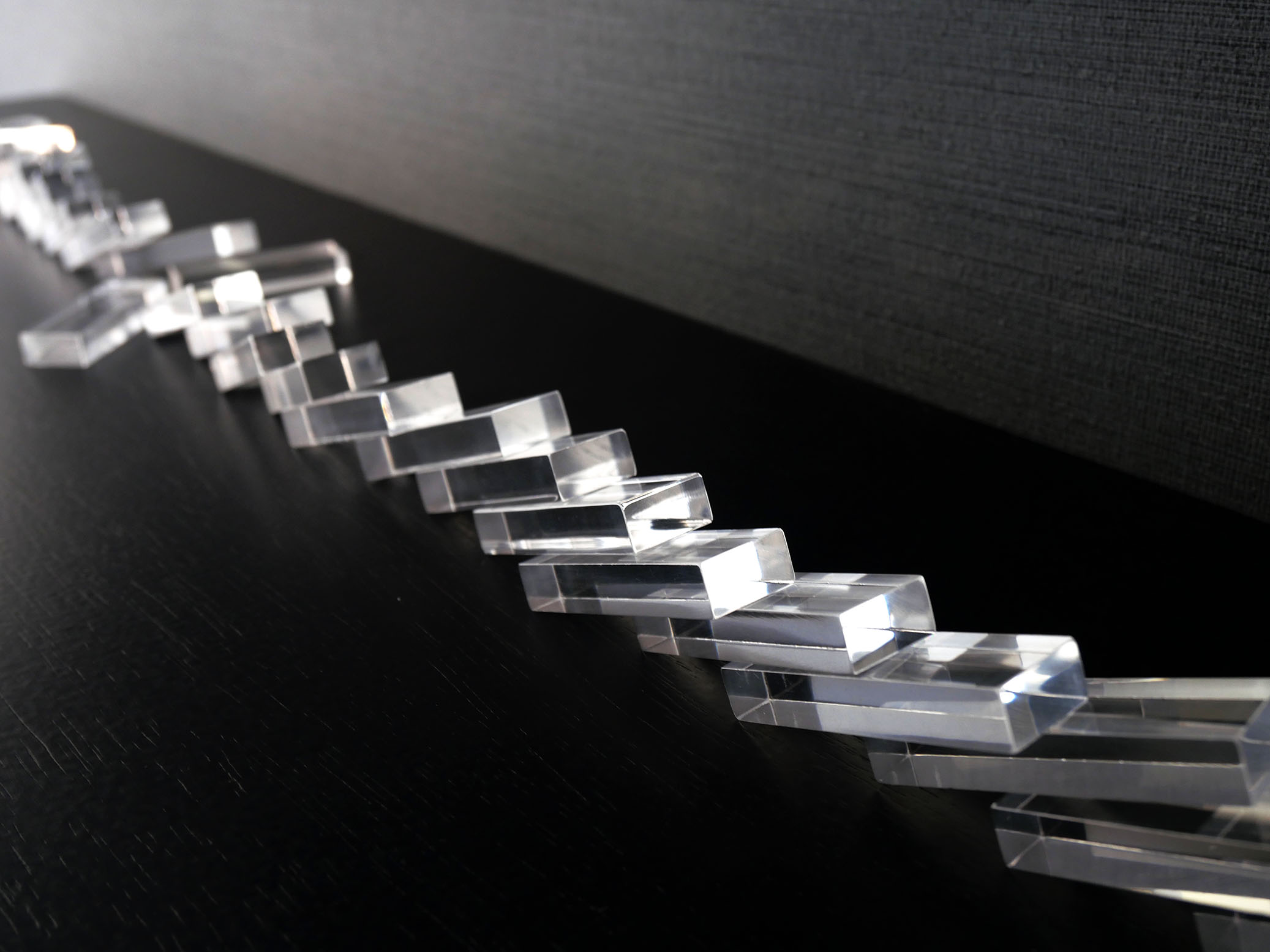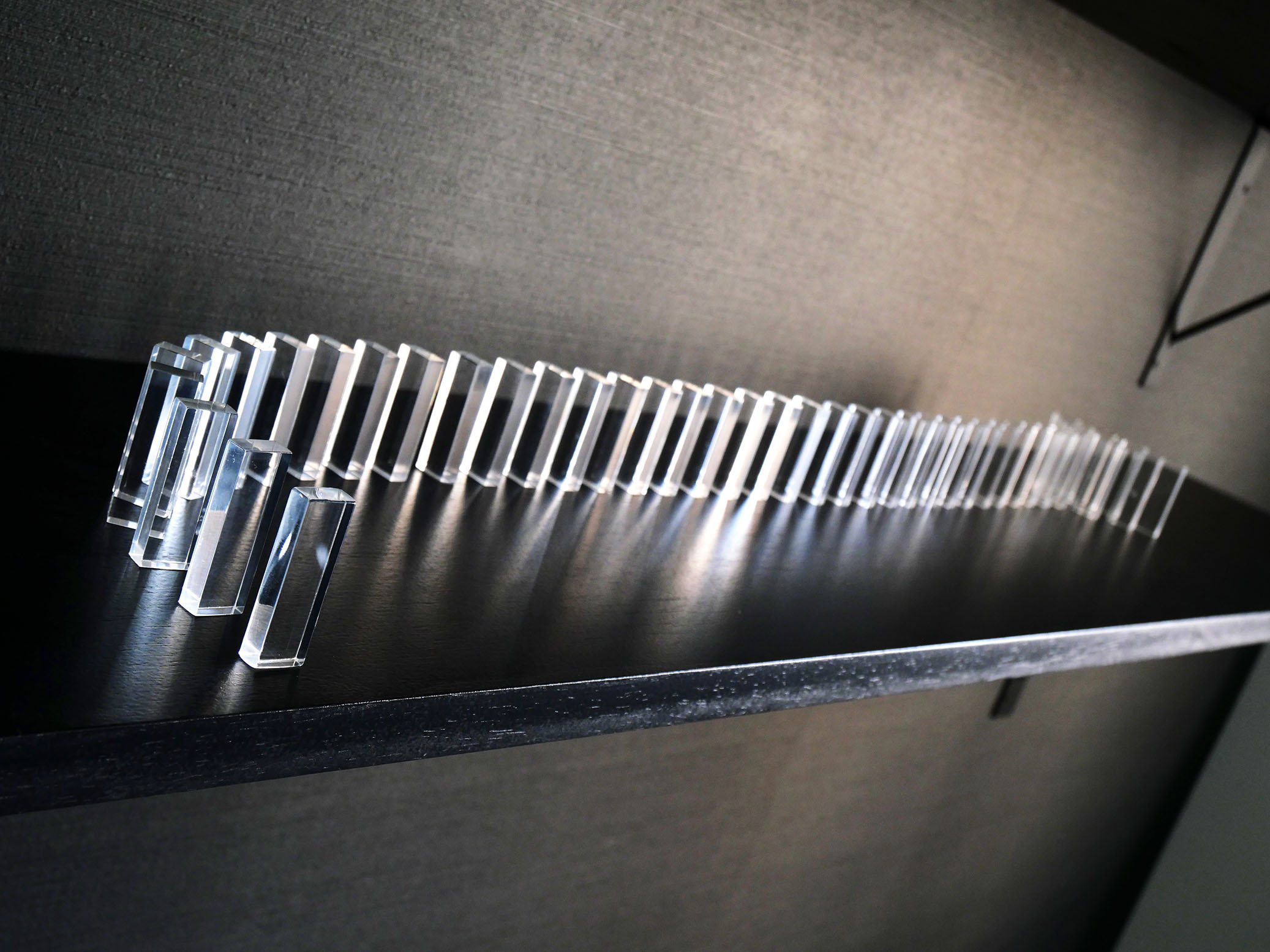 アクリルを切削加工した後に端面を磨き、透明なドミノを製作しました。
